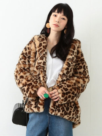 Ray BEAMS(レイ ビームス) ファー ヒョウ柄 ハーフコート ビームス ウイメン 送料無料